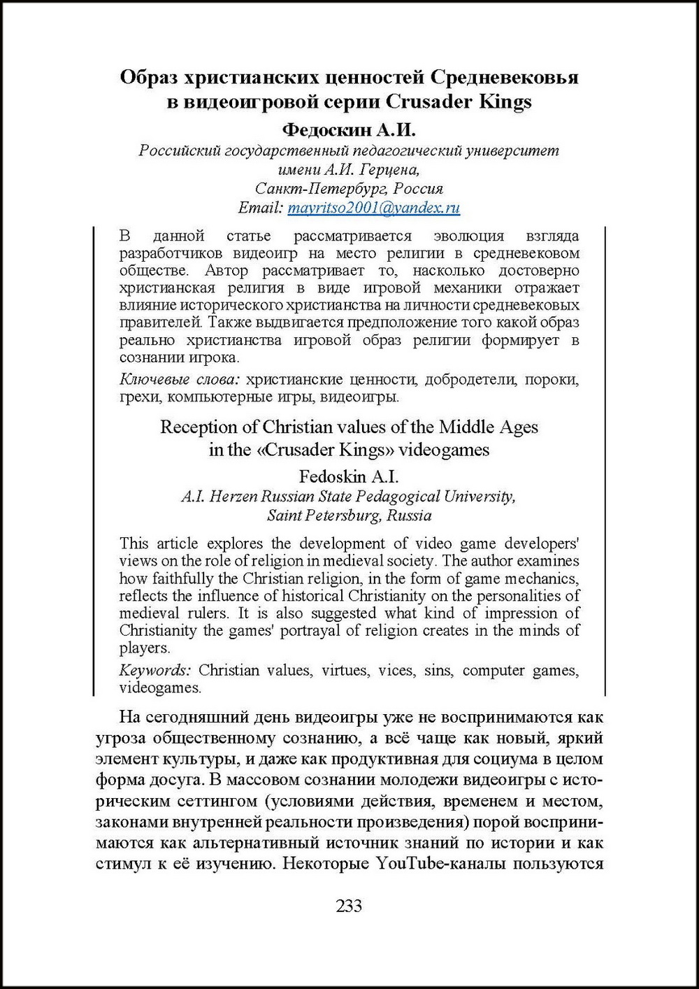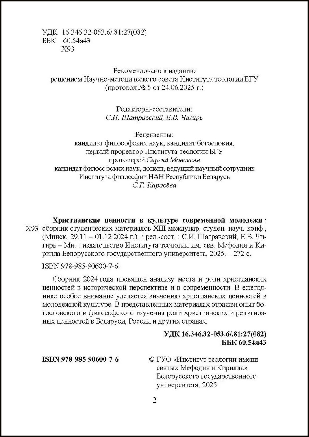 Дрожилин, Е. Очень ближнее (почти родное) зарубежье [О поездке студентов СНО религиоведения и СНО кафедры русской истории РГПУ им. А.И. Герцена в Минск на студенческую конференцию «Христианские ценности в культуре современной молодёжи»] // Двадцатый корпус : Студенческая газета Института истории и социальных наук. 2024. № 206. декабрь. С. 6. URL:http://ethna.su/2025/02/23/23-01-2025-drozhilin_zarubezhe-20k-206; https://www.calameo.com/read/004677932fbc6f599c47e.