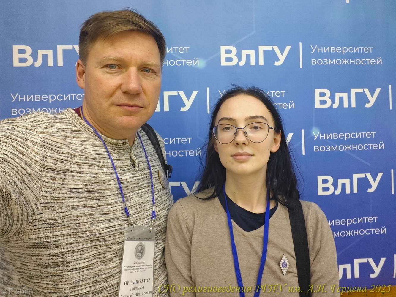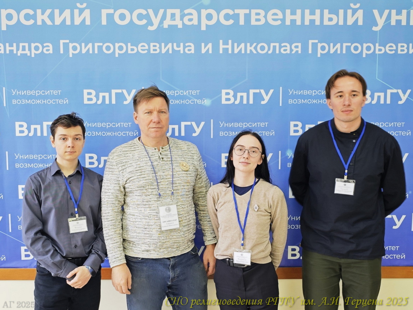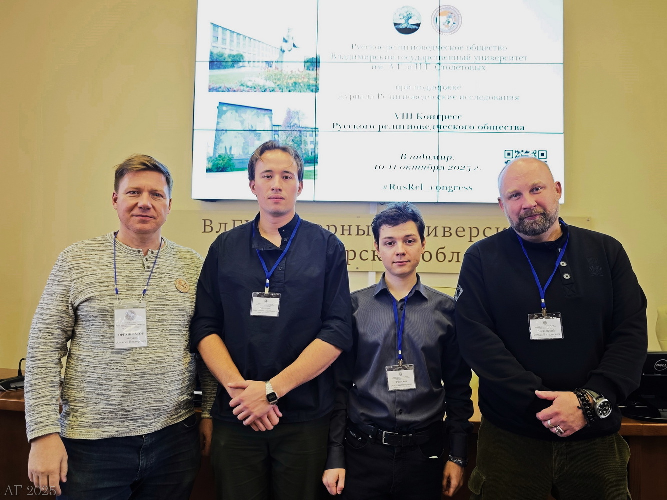 10 октября 2025 года СНО религиоведения приняло участие в VIII конгрессе Русского религиоведческого общества, проходившем во Владимирском государственном университете: с докладами на секции «Новое язычество» выступили председатель СНО Даша Виллемсон, куратор СНО доцент А.В. Гайдуков и два выпускника РГПУ им. А.И. Герцена, а ныне аспиранты ЛГУ имени А.С. Пушкина Константин Никоноров и Алексей Федоскин. Кроме докладов и общения с исследователями удалось познакомиться с достопримечательностями города Владимир и посетить Музей Владимирской иконы.