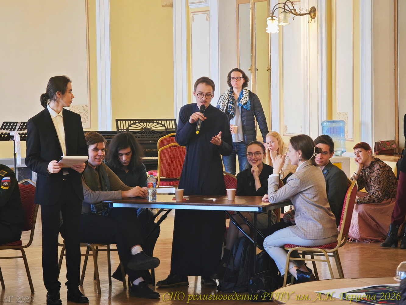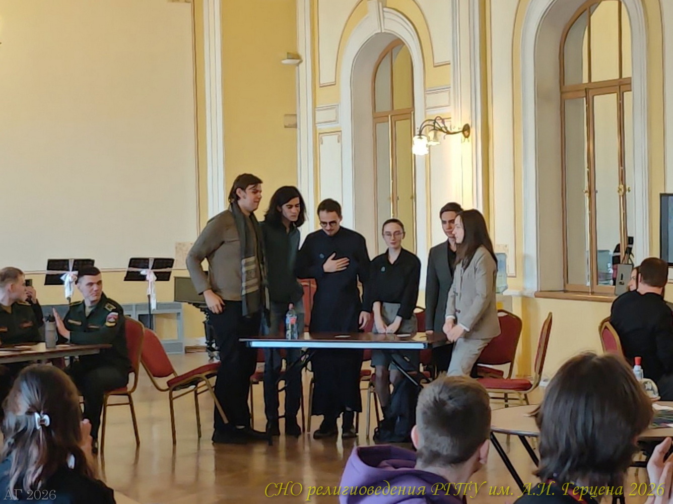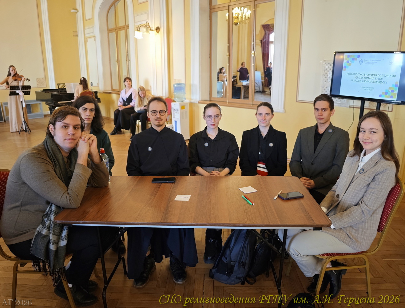 14 марта 2026 года команда студентов ИИСН РГПУ им. А.И. Герцена в Санкт-Петербургском государственном университете приняла участие в интеллектуальной игре «Что? Где? Когда?» для знатоков теологии. Второй год подряд интеллектуальная игра по теологии среди команд вузов и молодёжных сообществ проводится при поддержке Института теологии СПбГУ и Отдела по делам молодёжи Санкт-Петербургской епархии Русской Православной Церкви. В этот раз, в игре участвовало десять команд: кроме герценовцев были студенты Санкт-Петербургской духовной академии, Института теологии СПбГУ, РХГА им. Ф. М. Достоевского, православные молодёжные объединения Казанского собора, Исаакиевского собора, «Керигма», военного отдела Санкт-Петербургской епархии. В этот раз к игре подключились и студенты Новгородского университета имени Ярослава Мудрого.