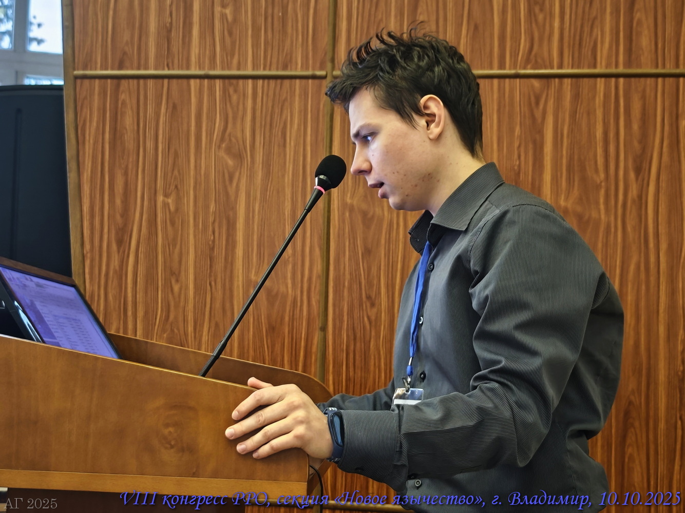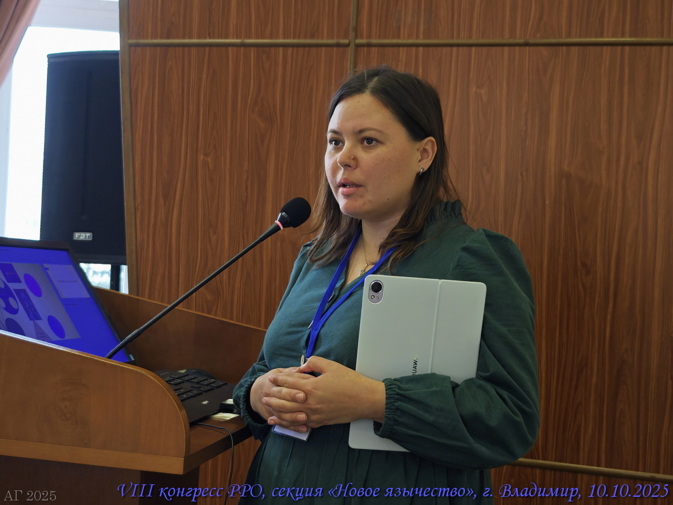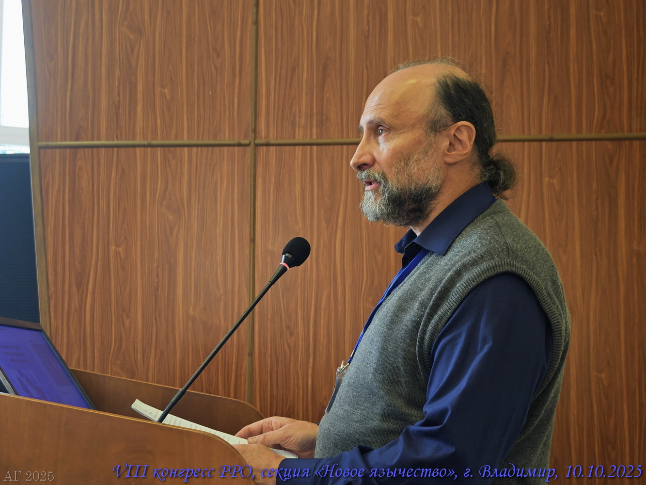 Участники Секции «Новое язычество» VIII конгресс Русского религиоведческого общества, Владимир, 10.10.2025Секция «Новое язычество» VIII конгресс Русского религиоведческого общества, Владимир, 10.10.2025Гипп К.С. «Современный ненецкий шаманизм: диффузный, медиатизированный». VIII конгресс РРО, 10.10.2025Епихина Е.А. «Интерпретация традиционных шаманских нарративов в современном бурятском шаманизме». VIII конгресс РРО, 10.10.2025Баландин К.А. «Репрезентация “чимарий йула” и “марий йула” в представлениях жителей Моркинского района Марий Эл». VIII конгресс РРО, 10.10.2025Никоноров К.Д. «Трансформация терминов исламского происхождения в традиционных верованиях финно-угорских народов Урало-Поволжья». VIII конгресс РРО, 10.10.2025Громов Д.В. «Монотеизм и политеизм в родноверии». VIII конгресс РРО, 10.10.2025Маликов И.Ф. «Образ Сварога в современном родноверии». VIII конгресс РРО, 10.10.2025Виллемсон Д.П. «Праздник Лиго как отражение народного язычества и форма сохранения национальной идентичности в современной Латвии». VIII конгресс РРО, 10.10.2025Кутарев О.В. «Иконография Збручского истукана в сопоставлении с базой электронного каталога славянских идолов «Дажьбожич» как источниковая база для исследователей и язычников». VIII конгресс РРО, 10.10.2025Федоскин А.И. «Конвергнетная эволюция религиозных взглядов неоязычников: русско-польские отношения». VIII конгресс РРО, 10.10.2025Артёмова Л.С. «Трансформационные игры и язычество: психологические аспекты». VIII конгресс РРО, 10.10.2025Гайдуков А.В. «Проблема оязычивания народных православных традиций на постсоветском пространстве». VIII конгресс РРО, 10.10.2025Шиженский Р.В. «Русская языческая тризна XXI века: идеологический тайл в конструировании исторической идентичности». VIII конгресс РРО, 10.10.2025Секция «Новое язычество» VIII конгресс Русского религиоведческого общества, Владимир, 10.10.2025Секция «Новое язычество» VIII конгресс Русского религиоведческого общества, Владимир, 10.10.2025Секция «Новое язычество» VIII конгресс Русского религиоведческого общества, Владимир, 10.10.2025Секция «Новое язычество» VIII конгресс Русского религиоведческого общества, Владимир, 10.10.2025Секция «Новое язычество» VIII конгресс Русского религиоведческого общества, Владимир, 10.10.2025Секция «Новое язычество» VIII конгресс Русского религиоведческого общества, Владимир, 10.10.2025Участники Секции «Новое язычество» VIII конгресс Русского религиоведческого общества, Владимир, 10.10.2025
