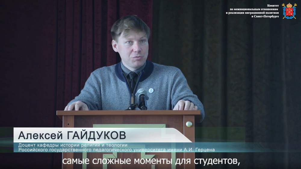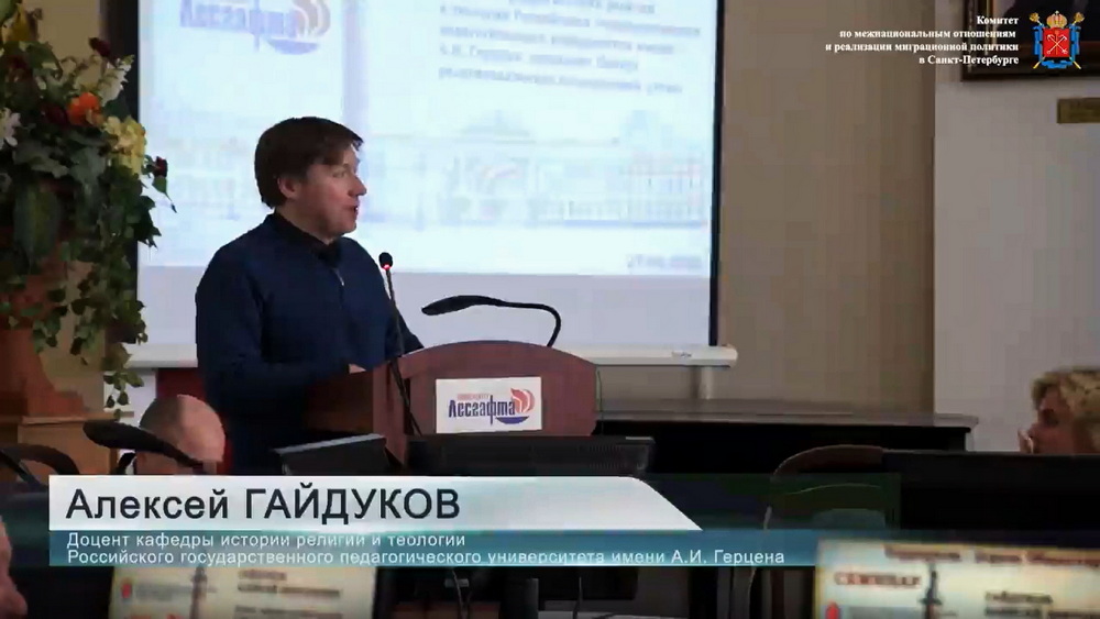 07.10.2017 Гайдуков А.В. Характеристика конфессиональной динамики региона (на примере Санкт-Петербурга и Нижнего Новгорода). Открытая лекция №2 в Мининском университете, Нижний Новгород (https://www.youtube.com/watch?v=SRljGn_8E48&t=2s).