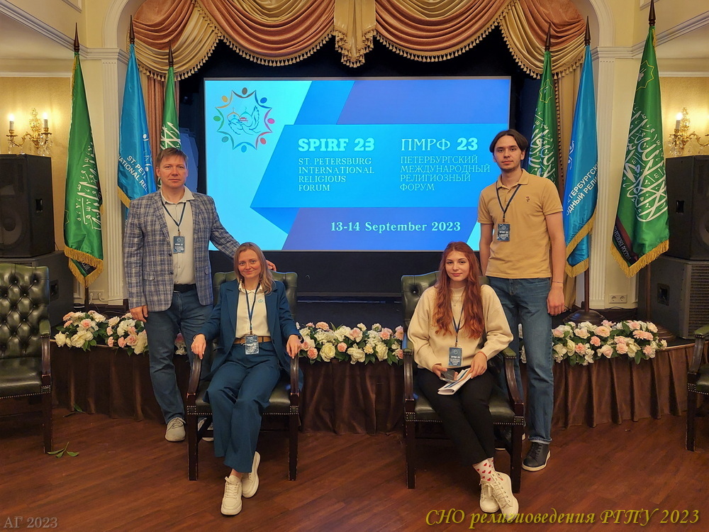 13 сентября 2023 года участники СНО религиоведения РГПУ им. А.И. Герцена посетили II Петербургский международный религиозный форум «Религиозные ценности в современном мире», организованный председателем Духовного управления мусульман Санкт-Петербурга и Северо-Западного региона России муфтием Равилем Панчаевым. 13 сентября участники СНО посетили открытие форума и пленарные заседания (см.: vk.com/wall107070_9832).